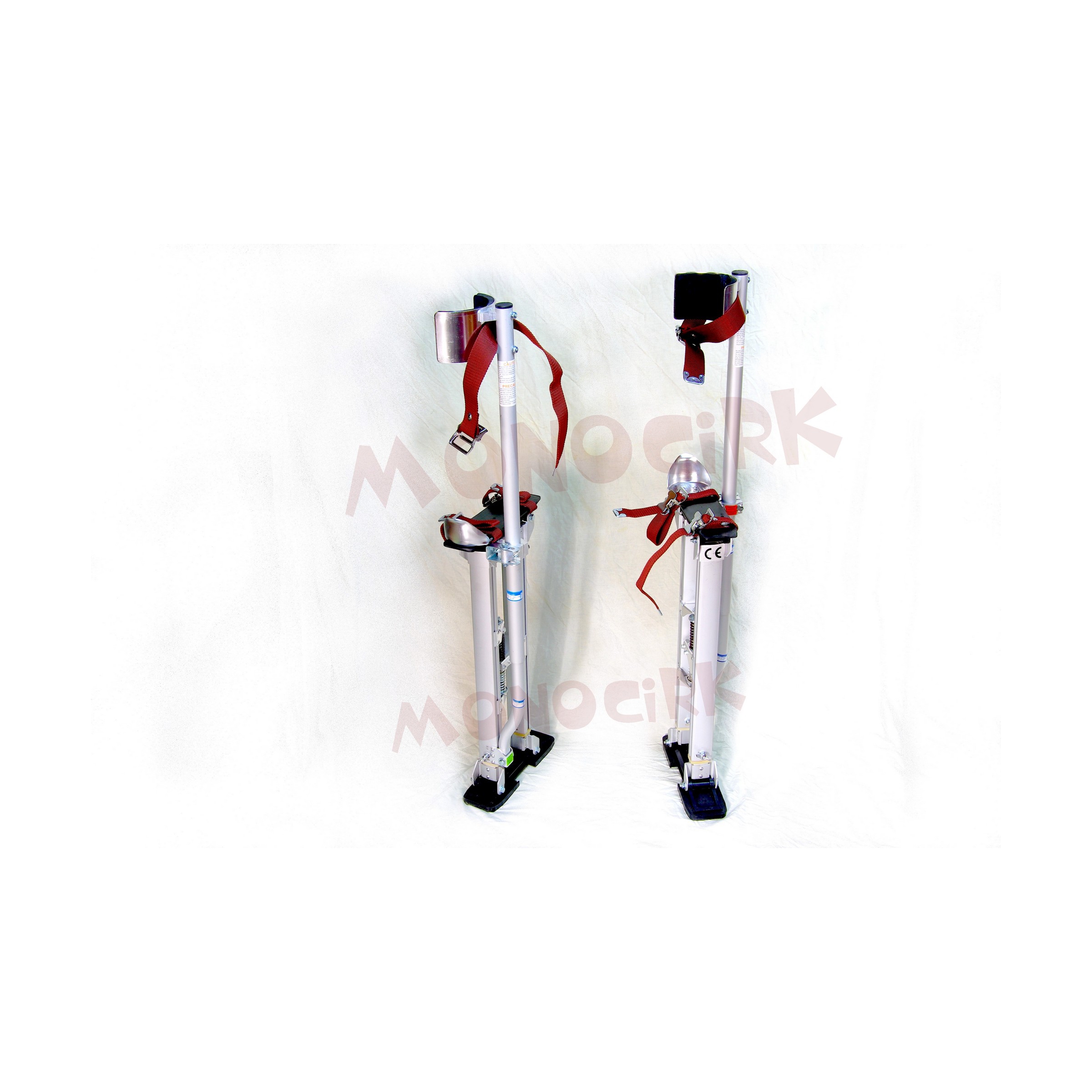 Ces échasses pour le cirque, la déambulation, les parades sont couramment appellées "échasses plâtrier". Elles sont largement utilisées pour les travaux de bâtiment, la pose de plaques au plafond, la peinture et tout ce qui évitera l'utilisation d'un escabeau.