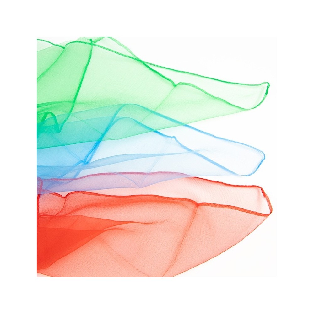 Ce kit de 3 petits foulards est destiné aux enfants dans l'apprentissage de la jonglerie et de la motricité. Les foulards très légers retombent lentement et laissent le temps aux enfants de les rattraper et de les relancer. Il est possible d'inventer beaucoup de jeux avec des foulards.