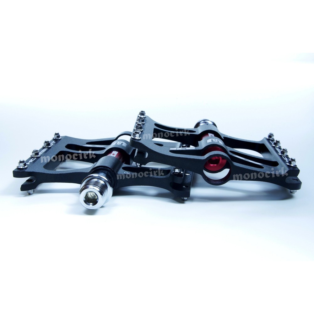 Un super look, une super accroche, un super poids, 310g c'est vraiment très léger pour ce type de pédales en aluminium anodisé bien larges.