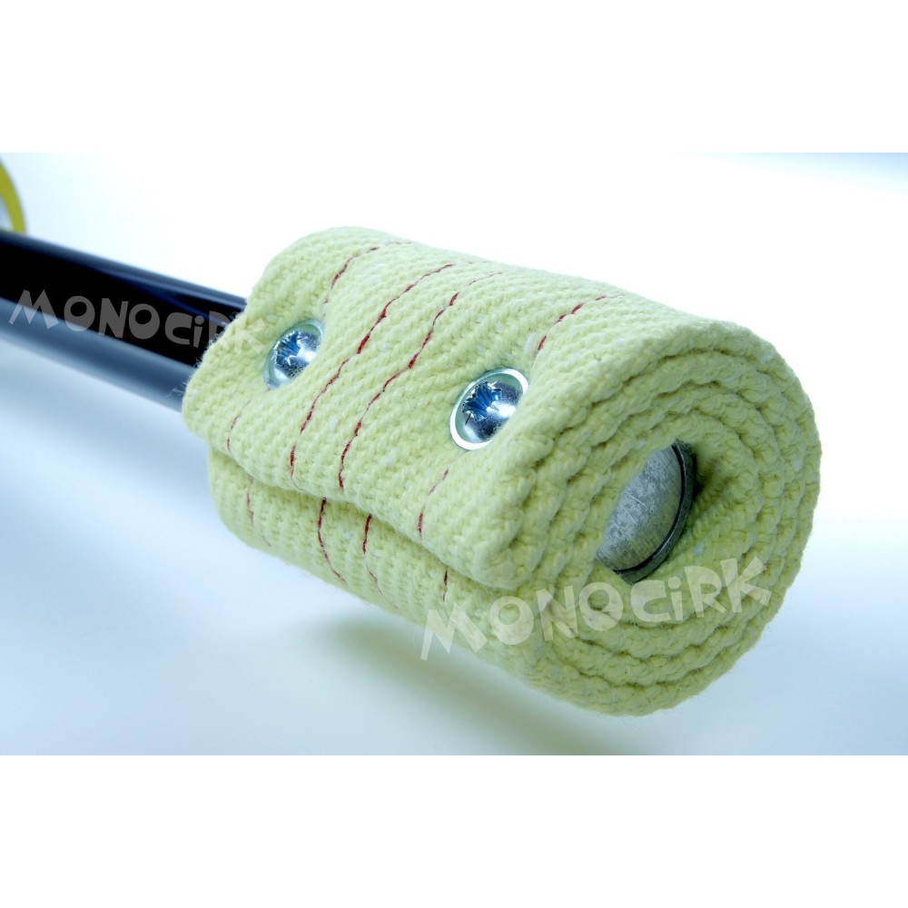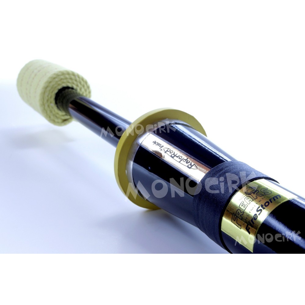 La mèche est en pur kevlar de 60mm de large fixée sur le tube par 2 vis. Le tube (18mm de diamètre) est en aluminium solide et anodisé qui permet un nettoyage plus facile (définition rapide de l'anodisation en bas de page). La rondelle très épaisse en aluminium maintient solidement avec 3 grosses vis le joint en caoutchouc. Le joint en caoutchouc est en matériau haute technologie très solide et très résistant aux flammes et hautes températures. Il est beaucoup plus épais que sur les autres torches (5mm contre 3mm pour la NiteFlite de Henrys) et protège efficacement des chutes. L'embout de protection est en mousse haute densité ultra solide.