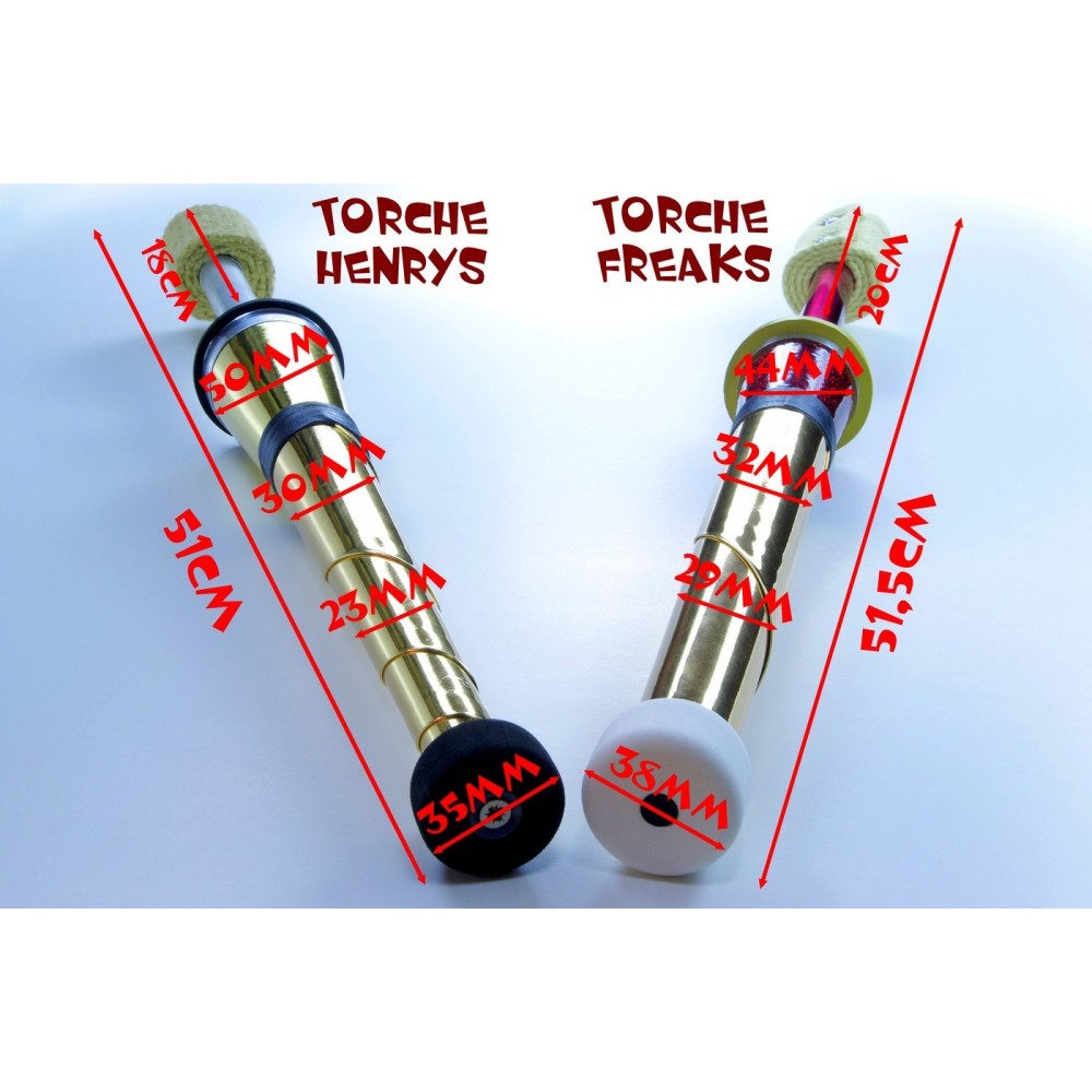 Une torche plus plus plus : la plus longue 51,5cm (de 0,5 à 1cm près), la plus lourde 295g, la plus flexible, la plus grande largeur de mèche 60mm (sauf la Mephisto 70 de Play), la poignée la plus large, l'embout de protection le plus gros, le joint de protection anti-gouttes le plus épais, la plus solide.