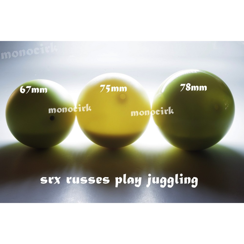 Utilisation : 3 à 5 balles pour un très gros visuel grâce à ses 78mm, éviter la fatigue, ne pas courir après ses balles, le multiplex. Une balle improbable : si l'on considère que les balles russes sont pour jongler à beaucoup de balles en même temps, une 78mm, par sa taille, est une curiosité. À tester donc pour des sensations très personnelles, cette 78mm ondule énormément quand on la fait tourner sur elle-même, est très agréable en main et telle une balle sac, s'immobilise au sol en retombant sans aucun rebond.