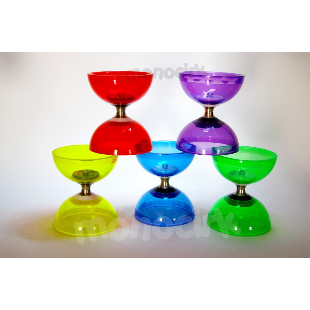 2ème version du Cyclone Quartz à triple roulement à billes. Différences avec la version 1 : Les roulements sont de meilleure qualité et 2 fois moins bruyants, l'axe est plus solide, les rondelles à l'intérieur des coupoles sont en métal (celles du modèle Hurricane), les bords extérieurs des coupoles sont arrondis (vifs sur la version 1). Un diabolo bien solide.