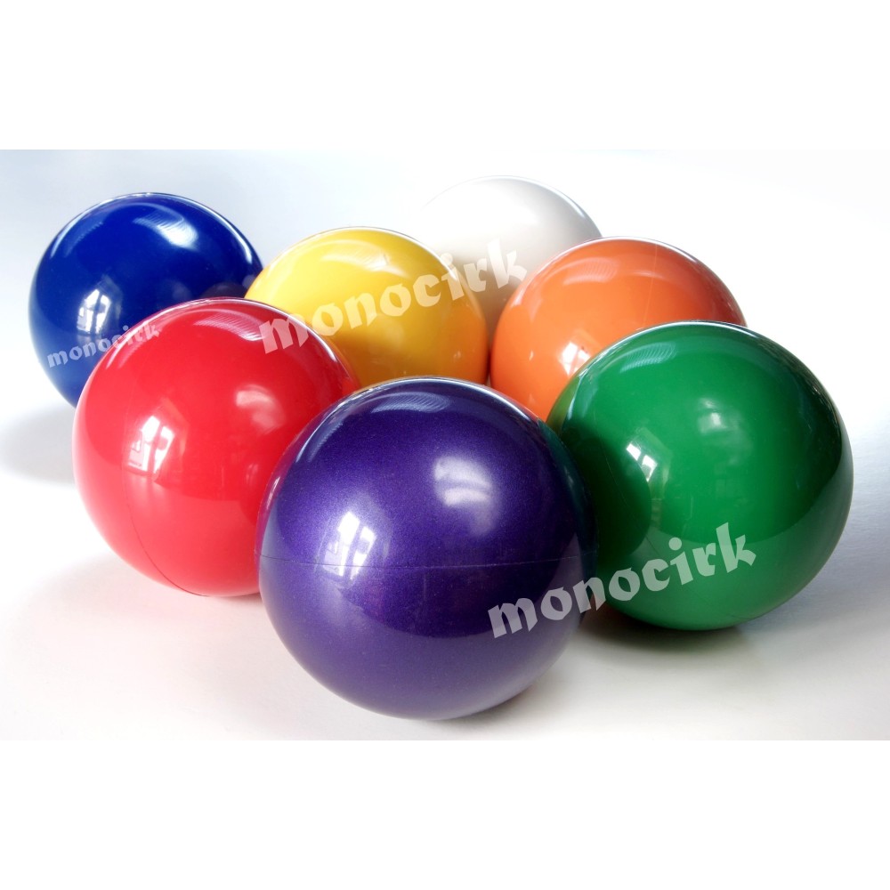 On appelle "balle de scène" les balles à coque plastique dure ou souple, creuses et vides à l'intérieur de tailles très variées pour enfants et adultes, pour apprendre et s'initier à la jonglerie avec du matériel solide que vous ne risquez pas d'abîmer, juste de salir.