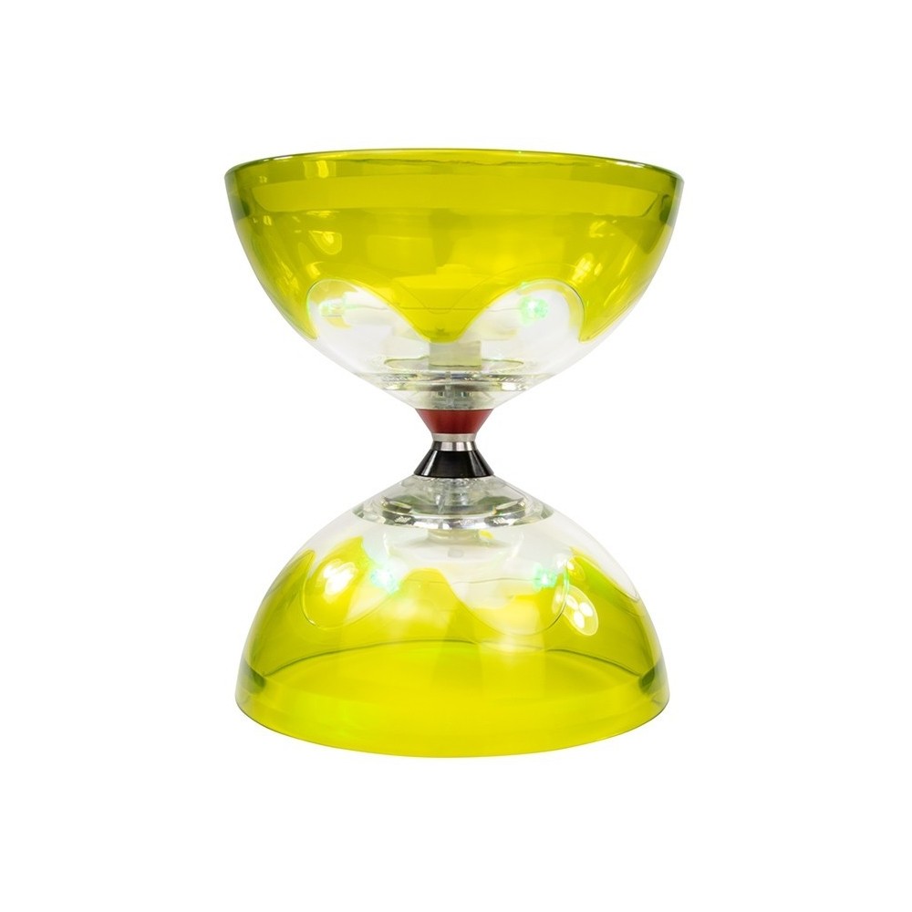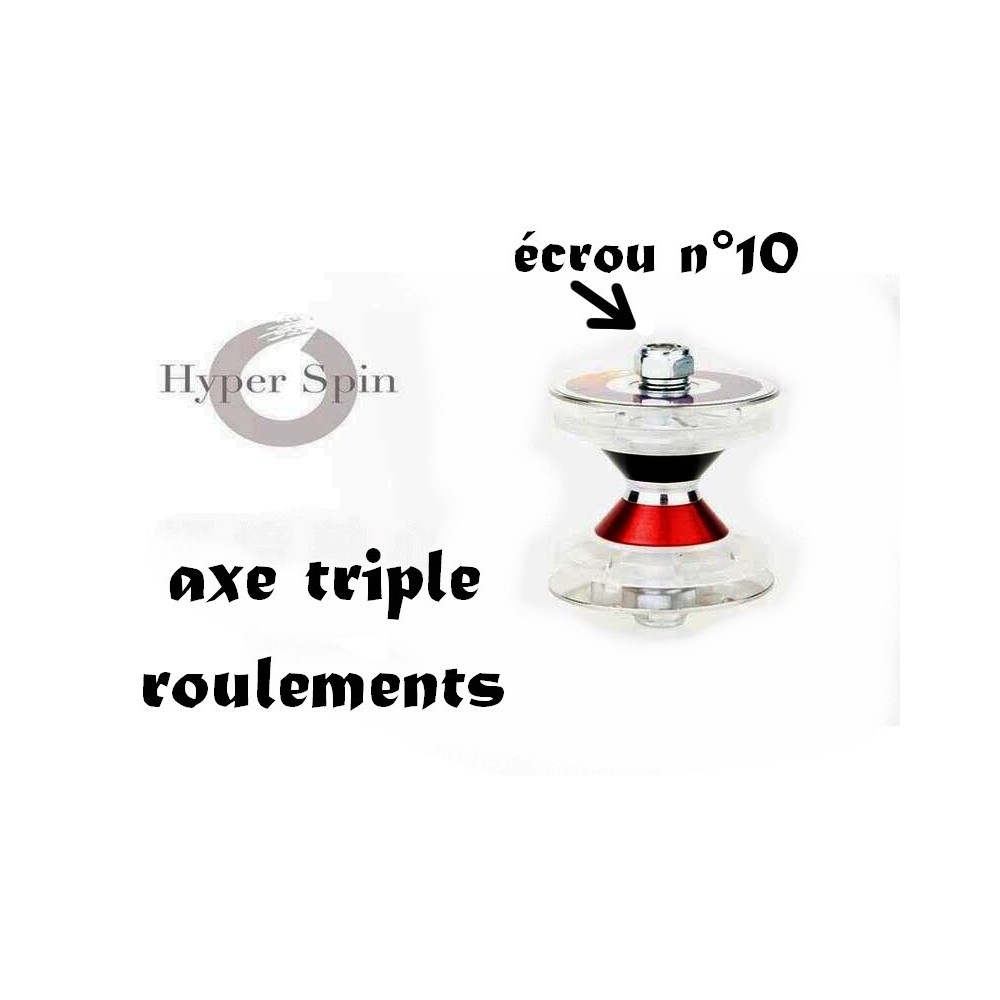 L'hyperspin est un très beau diabolo régulièrement utilisé dans le monde du spectacle, équipé d'un formidable axe triple roulements et de coques sensibles aux rayures et aux chocs. Les coquent peuvent se fendre, à la longue, à force de chocs durs répétés.