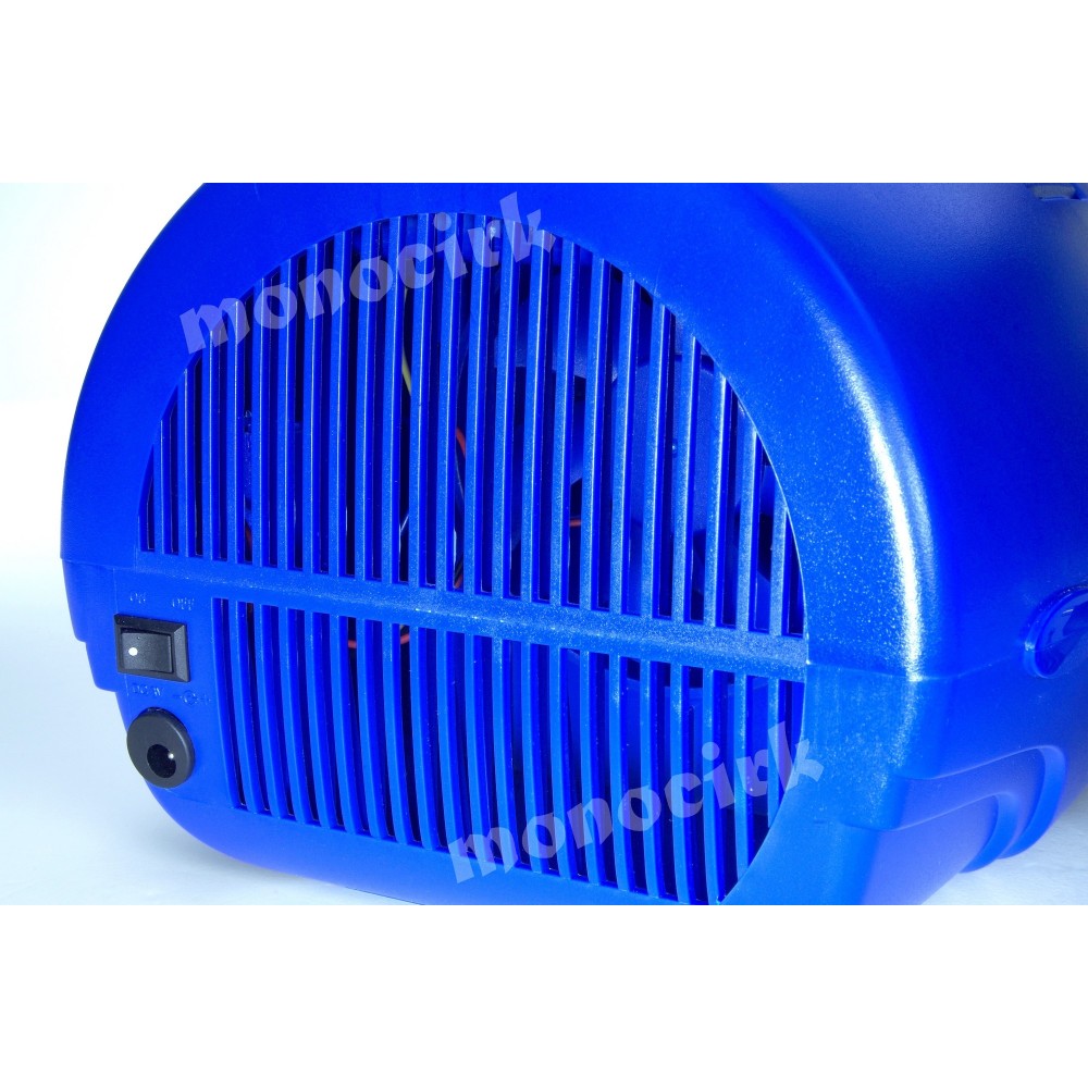 - La machine à bulles équipée d'une poignée pour le transport, d'un logement sur le dessus pour les 2 piles, d'un interrupteur ON/OFF, de l'entrée de la prise secteur.