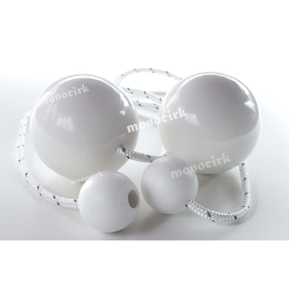 fabrication MONOCIRK - Paire de poïs contact 80mm balles blanches. Sur ces montages réalisés au magasin, vous pouvez choisir la couleur de vos poignées en silicone dans les options (voir photo 2). Si vous ne voulez pas changer la couleur des poignées, laissez "comme sur photo". INFO : les motifs de la corde peuvent varier, la corde peut aussi être totalement blanche.