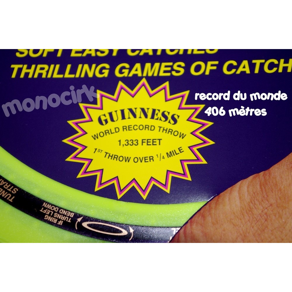 Pour un meilleur résultat, lancez l'anneau à plat et en ligne droite (sans lever le bras), nous l'avons essayer dans un gymnase....Le gymnase est vraiment trop petit pour lui!