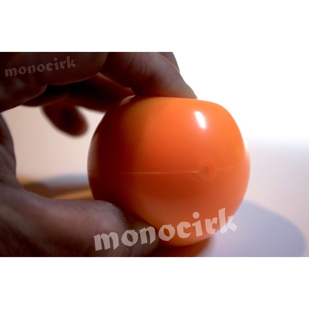 La balle HIX-S 62mm : plus petite et donc un peu plus rigide que sa grande soeur HIX67mm, en exerçant une pression avec 2 doigts (voir les dernières photos), la balle s'enfonce d'1/4 et reprend instantanément sa forme bien ronde. Elle est remplie pour moitié de sable, son bouchon est solidement fixé, léger bruit maracas.