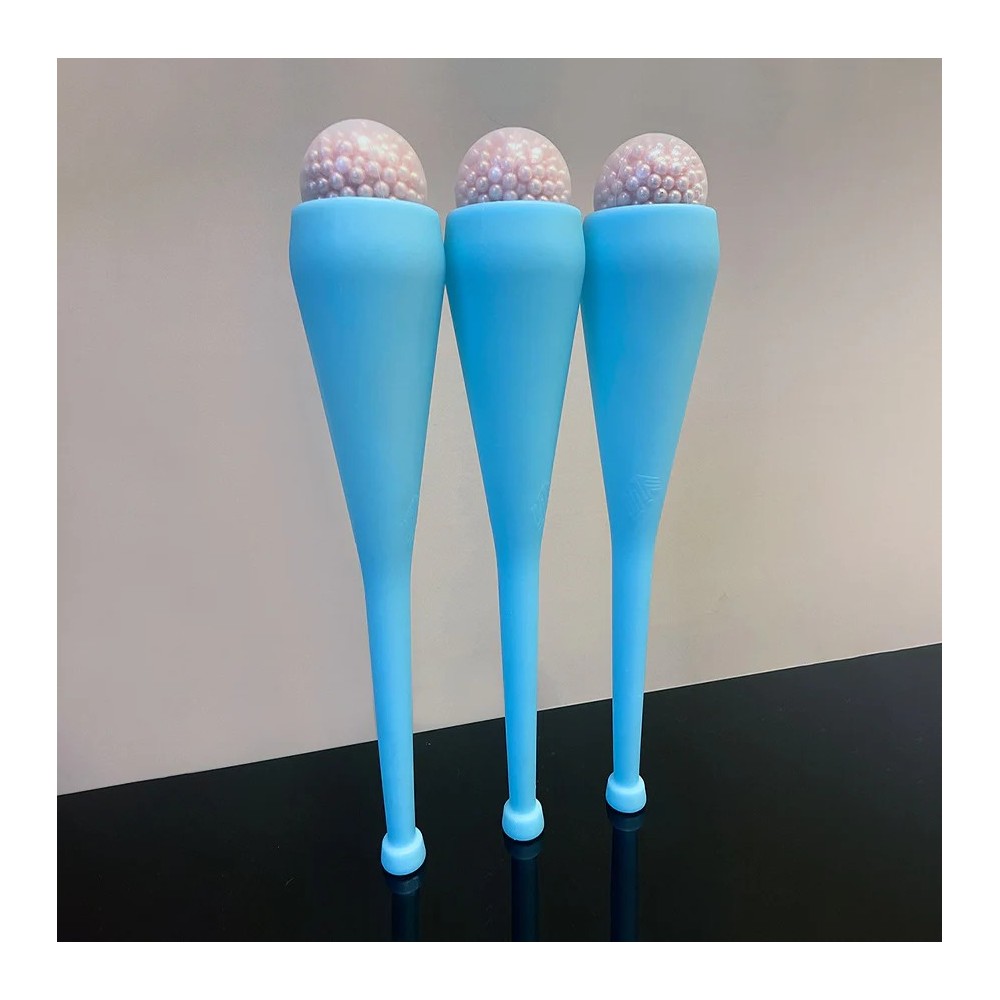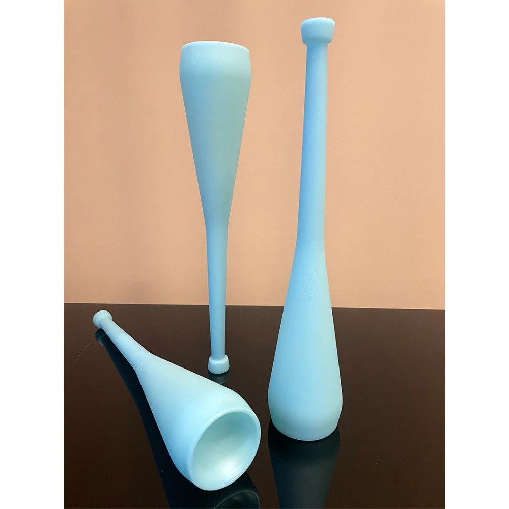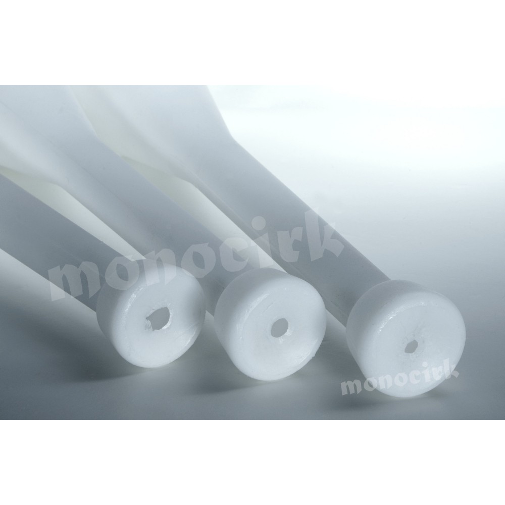 Test blocage des balles : le haut creux du corps peut loger toutes les balles de 60mm à 130mm. Balles moins de 80mm : peu d'intérêt, les balles bougent à la réception dans le cercle, exercice peu précis. Balles 80mm, 90mm, 100mm et 130mm : la réception est parfaite, les balles se bloquent instantanément, même la 130mm ne bouge pas, clairement, la 80mm est le minimum. L'extrémité creuse de la poignée doit permettre de bloquer des balles, possible à condition d'être très doué.