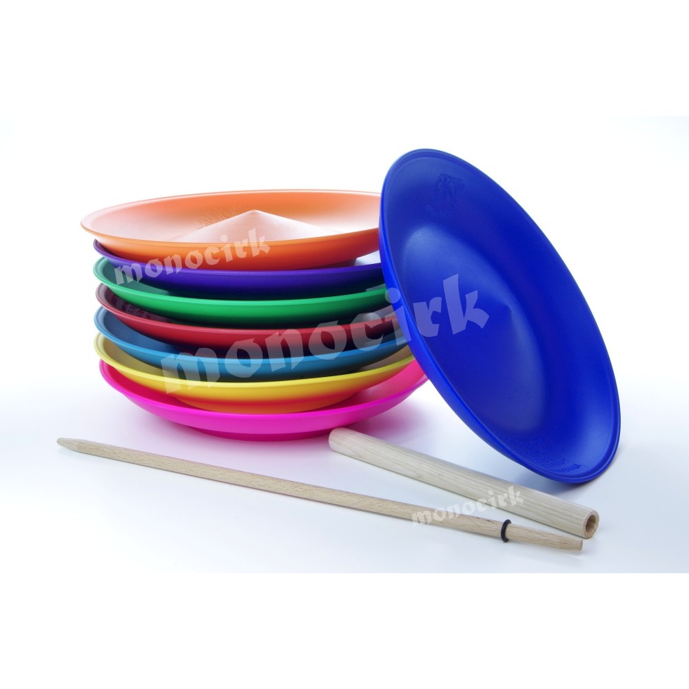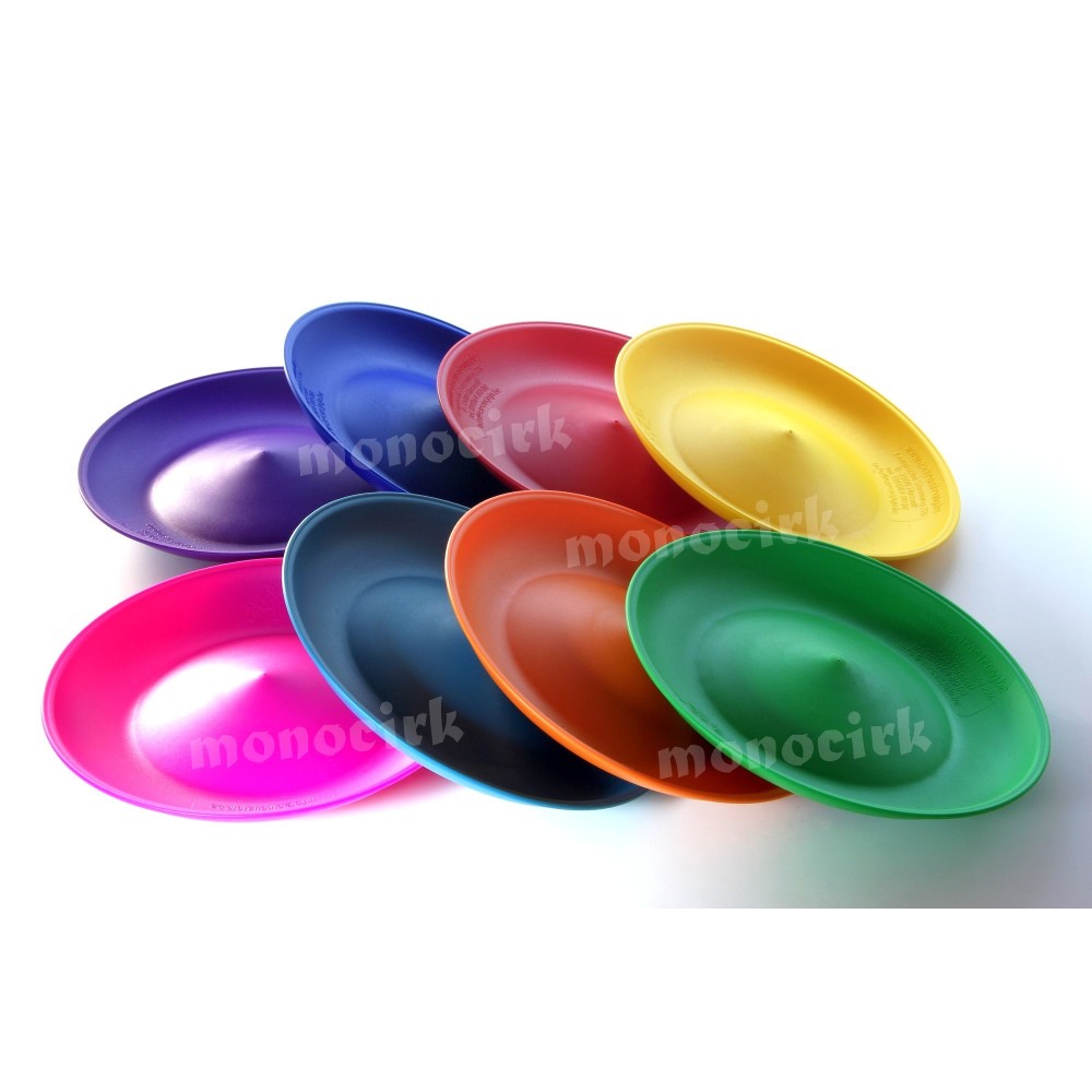 Assiette : poids : 125-128g / matière : PVC / diamètre : 23cm / avec rebord arrière incurvé pour mieux maintenir la baguette. La meilleure assiette pour réussir rapidement l'exercice. Son poids est supérieur aux assiettes courantes, elle tournera bien plus longtemps après une accélération. Sa qualité est irréprochable, très belle finition. La JOJO est mon assiette préférée!