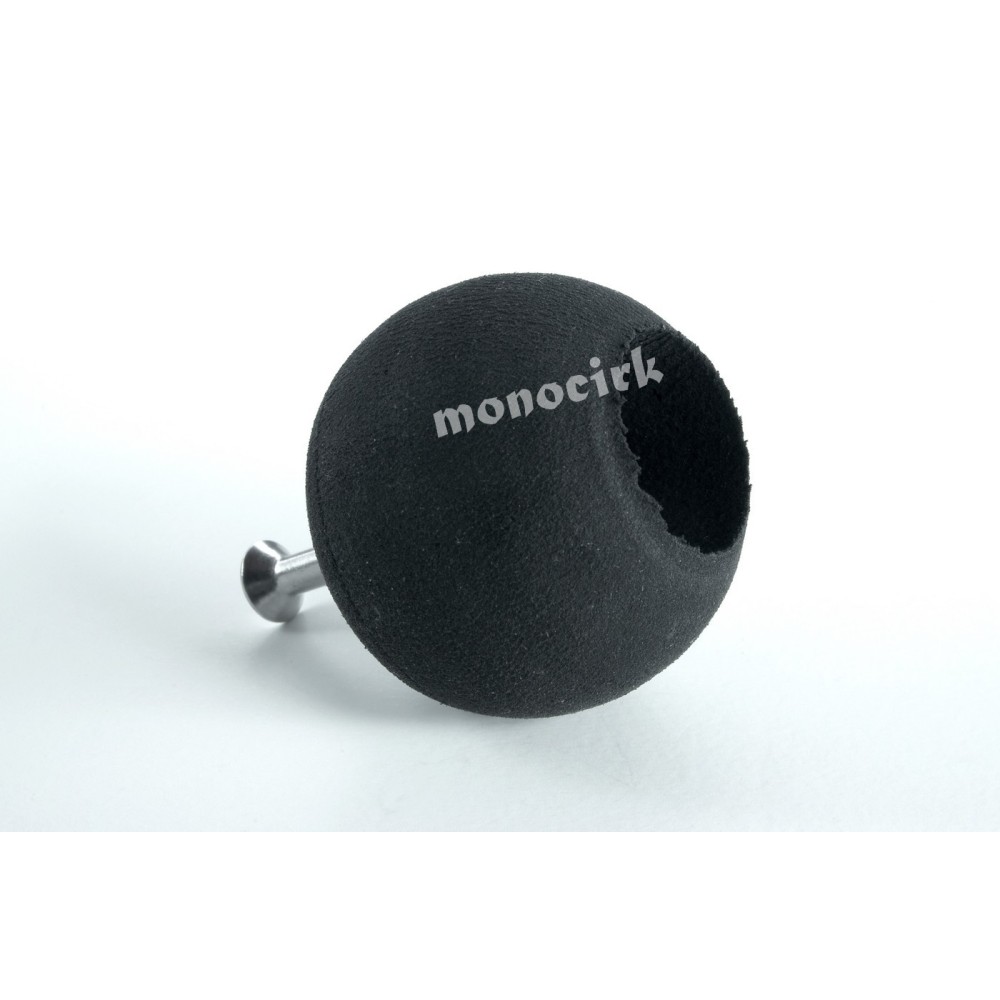 L'embout rond se visse à l'extrémité du manche de la massue. Il est livré avec sa vis et sa rondelle en plastique. Précaution : ne forcer pas trop en vissant, la rondelle en plastique risque de sortir de la tête de vis mais ça se récupère facilement.