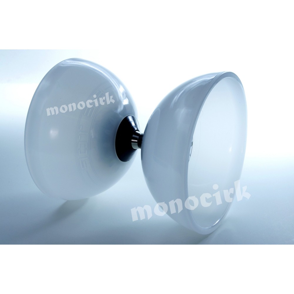 On rappelle que : un axe roulement à billes permet des rotations super longues ce qui donne beaucoup de temps pour préparer les enchaînements, pas besoin de relancer constamment comme avec un axe fixe. Comme tous les diabolos à roulements, il possède un cône noir d'un côté et blanc de l'autre pour repérer le sens de rotation. On ne peut pas faire l'ascenseur sur un axe à roulement à billes, les baguettes ALU sont les mieux adaptées pour les slides et grinds.