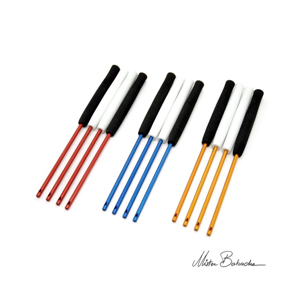 baguettes diabolo en aluminium anodisé série FLEX BABACHE pour les diabolistes à la recherche d'effets, de réactivités très personnelles, à tester de préférence.