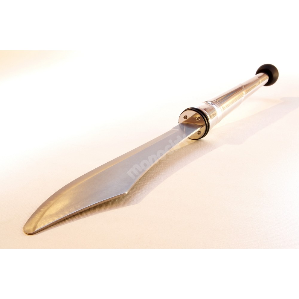 Un sabre visuellement impressionnant. Ce sabre de la marque anglaise est lourd, plutôt lent en vitesse de rotation et rebondissant à chaque réception dans les mains. En plus du poids, le visuel est très réaliste. Le bord de la lame est biseauté pour un effet très tranchant. Le manche torsadé est très souple et donc agréable en main, vous ressentirez un effet de rebond directement lié au poids de la lame mais on s'y fait très vite. L'embout de protection est en caoutchouc solide.