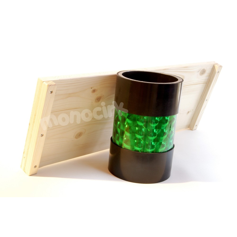Le rouleau est très solide et très bien fini. Le modèle en 14cm de diamètre est prévu pour les petits enfants débutants, le modèle en 16cm est prévu pour les plus grands et les initiés mais tout le monde peut s'exercer sur les 2 modèles. Fabriqué en PVC de haute densité épais de 1cm, il ne se déformera pas sous le poids des enfants mais peut donner une impression de légers rebonds sous le poids d'adultes, effet remarqué chez quelques artistes de nos associations de cirque et donc à prendre en compte. La bande en caoutchouc large de 6cm permet une adhérence à la fois au sol et sur la planche. Elle est épaisse de 3mm, le rouleau fait donc réellement 16,6cm de diamètre. À noter qu'il existe des rouleaux d'initiation en 13cm de diamètre, en plastique, souvent verts et sans bande caoutchouc. Ces rouleaux sont de très bas de gamme et se déforment rapidement, ils ne seront pas proposés sur ce site. À savoir : les bandes caoutchouc collées peuvent bouger à force de frottement de la planche, faciles à replacer.