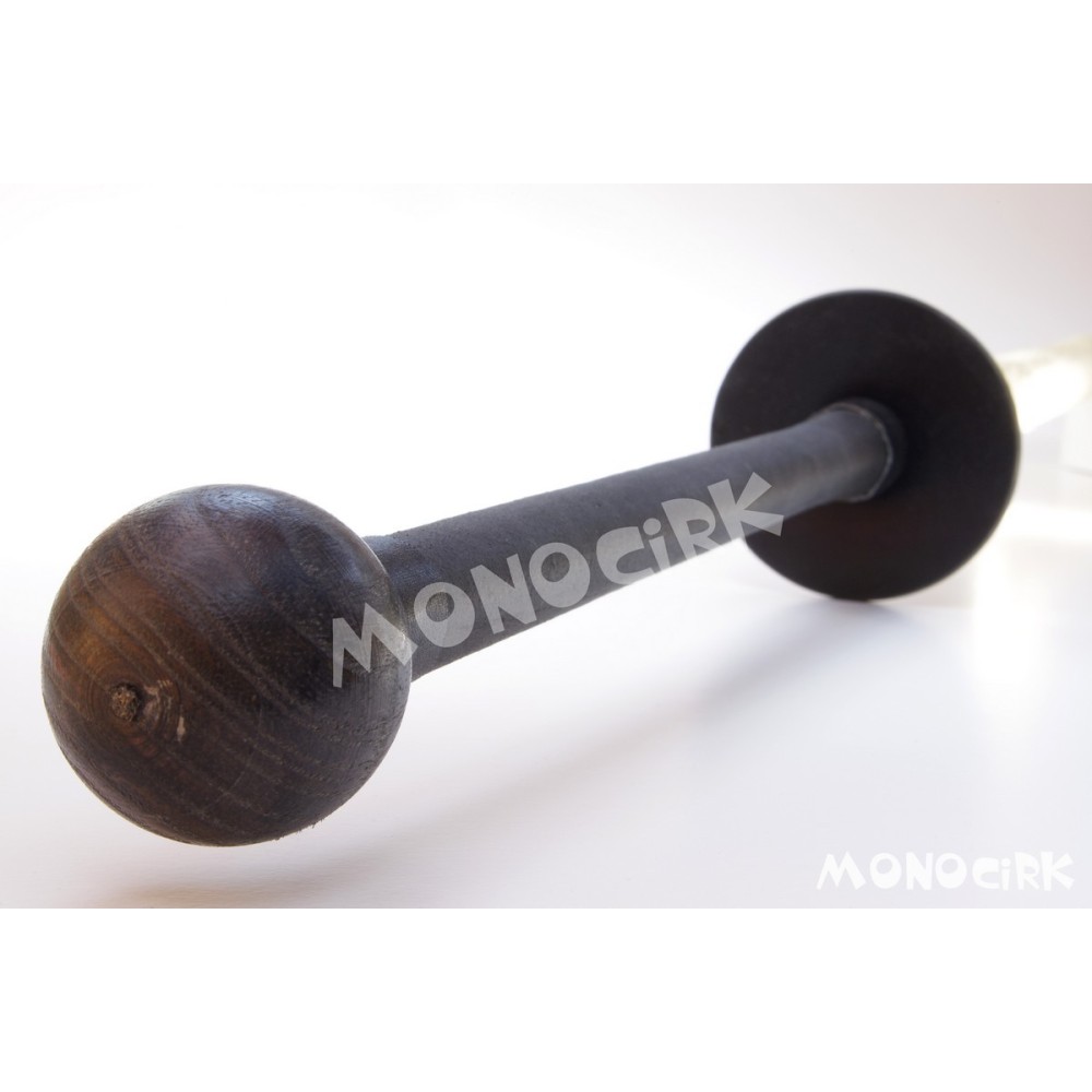 La boule à l'extrémité du manche est en bois et parfaite pour les swings, le disque très souple en silicone protège des écoulements de pétrole.